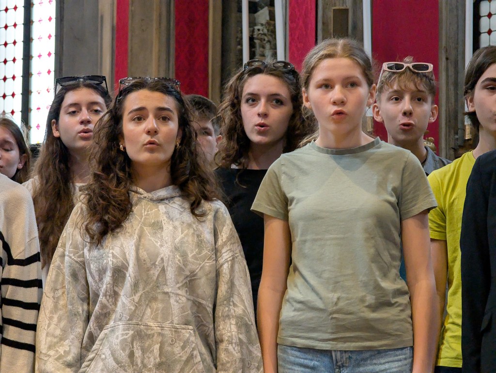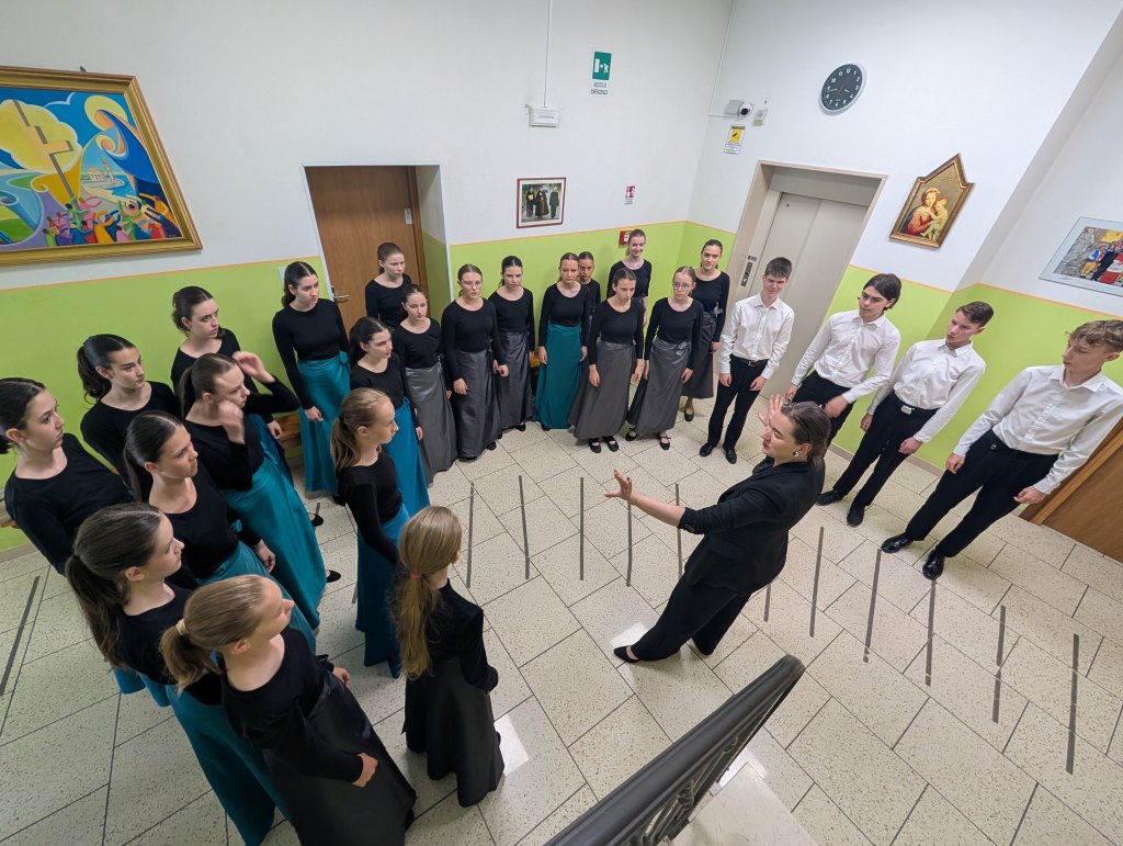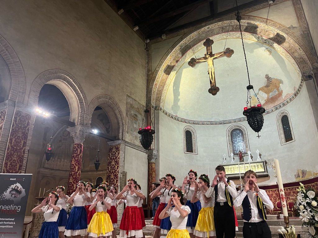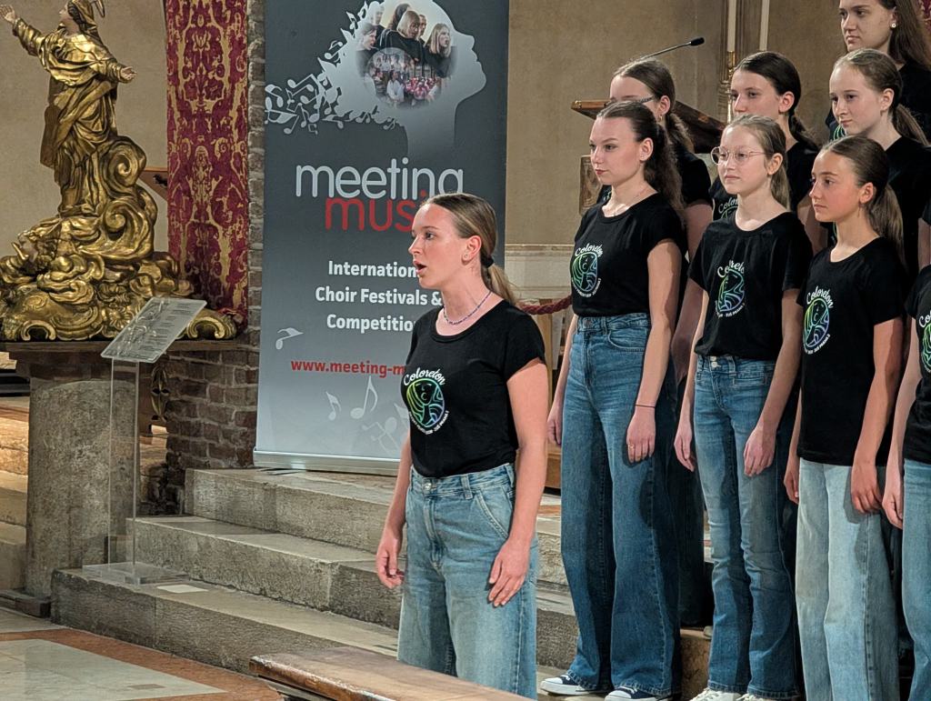 Probudili jsme se do krásného italského rána zalitého sluncem se zvuky moře. Dole nás čekala bohatá snídaně, kde jsme si mohli vybrat mezi italskými salámy, sýry, míchanými vajíčky, zeleninou, dokonce jsme mohli ochutnat italské snídaňové mini dezerty – i přesto někteří zvolili čokoládové bobky s mlékem. Na hotelu se děti rozezpívaly a vydaly se na workshop s porotci festivalové soutěže. Sbor zazpíval porotě celý svůj dnešní program v dětské kategorii “jako na soutěži”. I když to nebyl náš nejlepší výkon (všichni víme, že to umíme lépe), porotci náš i tak velmi pochválili, speciálně za výraz a vyzdvihli naši Rosu Štullić, která podle nich krásně zpívala očima. O speciální potlesk poprosili pro naši paní klavíristku (my víme, že je nejlepší!) a pro pánskou sekci jako oporu spodních hlasů a barvu! Uznali, že ač jde o velmi náročný program pro věkovou kategorii našeho sboru, vypořádali jsme se s ním velmi dobře. Měli pro nás doporučení, která se dala ještě před soutěží aplikovat. Některá doporučení nám i prakticky ukázali a pracovali s námi přímo na místě. Po workshopu měly děti obědové osobní volno venku poblíž pláže a po něm sraz na hotelu, kde jsme si znovu zopakovali doporučení porotců a poté už nás čekala akustická zkouška v prostorách soutěže (v kostele), ostrých 10 minut pro každý sbor včetně příchodu a odchodu. Vystupovali jsme až na konci celého bloku, měli jsme tedy čas (hlavně mladší děvčata) se sžít s novými sukněmi, které byly pro tento výlet ušité. Všechny nám během toho zkoušejícího procesu umělecky vyrostly, adekvátně k tomu tedy mají nový kostým. A všichni krásně ladíme!