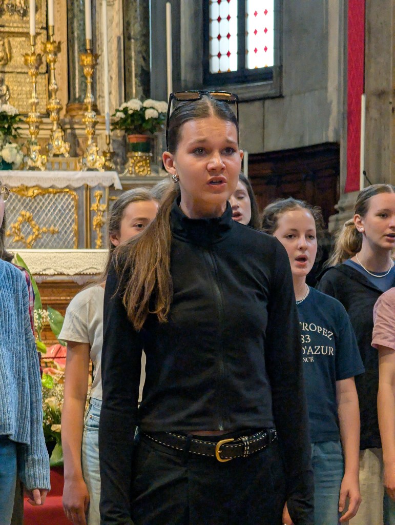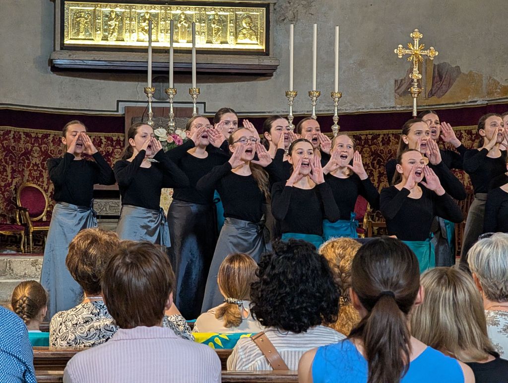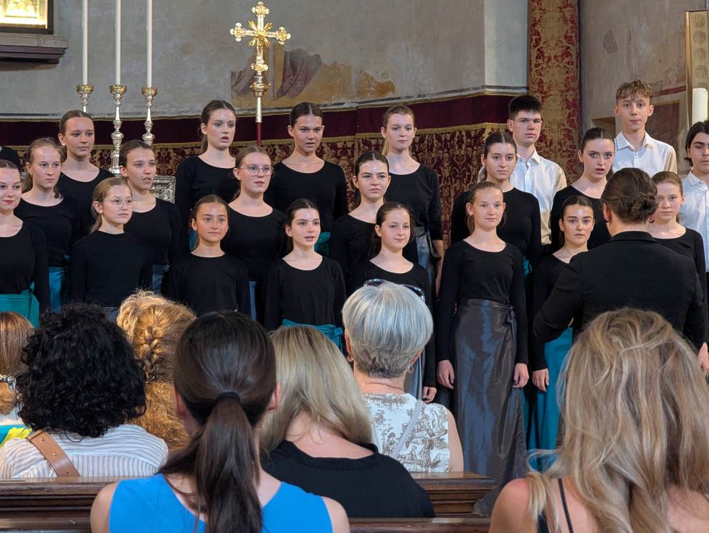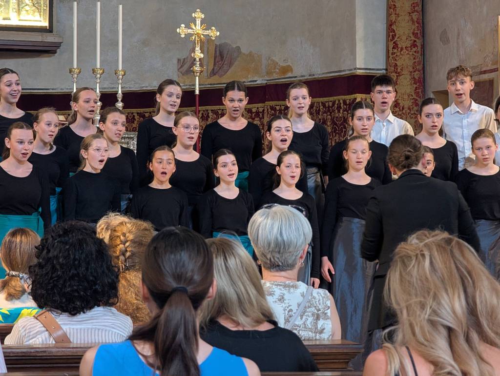 Krásný výkon jsme šli oslavit společnou večeří – tam, kde včera. Vítali náš jako staré známé a dokonce kvůli nám otevřeli kuchyň dříve. Spokojené nakrmené děti měly chvilku volna, načež jsme se večer vydali do stejného kostela (tam už jsme častěji než ve vlastní posteli…) na Friendship Concert. Na koncertě účinkoval švýcarský sbor, chorvatský sbor a my jako zlatý hřeb večera (citujeme manažerku Lucku, pozn. redakce) I toto vystoupení se nám povedlo, i když na nás byla znát velká únava – a není divu. Děti za sebou mají velmi náročný den. A tak po krátké schůzi byly poslány do peřin. Co nás čeká zítra? – BENÁTKY!