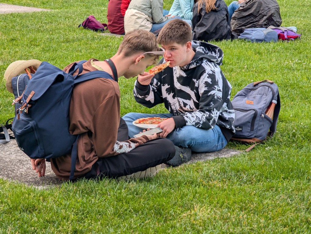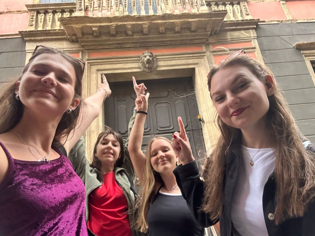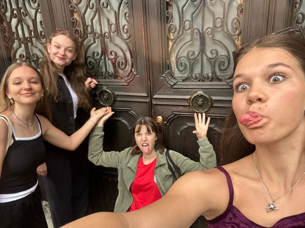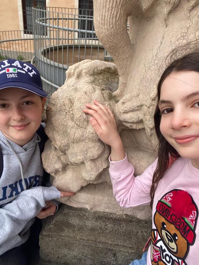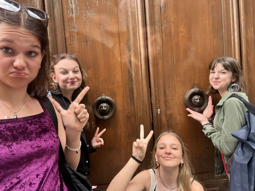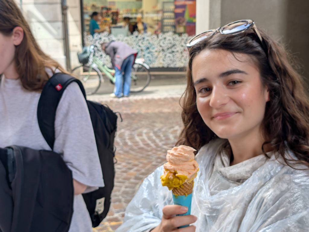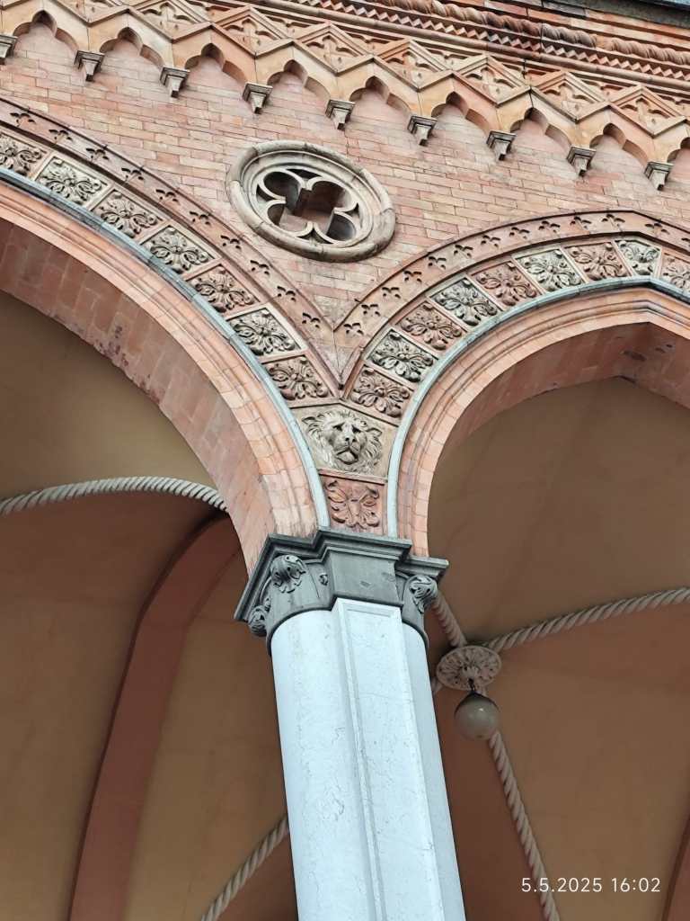 Ráno jsme si přispali a posunuli snídani na 9:00, aby si děti opravdu odpočinuly. V 10:00 už jsme byli na cestě do Padovy. Paní sbormistryně slíbila dětem za životní výkon na soutěži zmrzlinu, do teď si ji děti kvůli soutěži dát nemohly, a proto Silvi vygooglila nejlépe hodnocenou gelaterii v okolí a byla to úplně první zastávka v Padově. Příchutě jako citron s bazalkou, ostružina, čokoládová hruška, bílá čokoláda, pistácie, banán v čokoládě, stracciatella… výběr byl pestrý, všichni si vybrali. Poté si děti odhlasovaly, že by radši chodily ve skupinkách než abychom chodili po městě společně. Dostaly tipy, co můžou v Padově navštívit, (Bazilika sv. Antonína, Padovskou univerzitu, Piazza dei Signori s nejstarším orlojem svého druhu na světě,…), dostaly nabalený oběd ve formě sendviče, sladkou tyčinku dle vlastního výběru, kostičku parmazánu a sušenky TUC, a vypustili jsme je do města na celý den. I když jsme se dešťovým srážkám úplně nevyhnuli, bylo příjemné teplo, s deštěm svítilo sluníčko. V průběhu dne ale ještě všichni plnili challenge – vyfoť se s co nejvíce lvi, které najdeš. Ono totiž Benátky (a jak jsme zjistili, tak i Padova) jsou spojeny se svatým Markem, jehož symbol je právě lev. Lvy lze najít jako sochy, reliéfy, klepadla u dveří, zvonky, dekorace,… Podívejte se do fotolgalerie níže, jak celodenní výzvu všichni zvládli! (bude asi třeba fotky rozkliknout, náhled se nezobrazuje celý, pozn. red.) Na konci putování, už když jsme se potkali zpět na srazu, jsme si před Bazilikou di Santa Giustina vysvětlili, proč právě lev. Na bazilice jsou totiž vyobrazené všechny 4 atributy všech čtyř evangelistů. Lev – Marek, býk – Lukáš, lidská tvář/anděl – Matouš, orel – Jan.