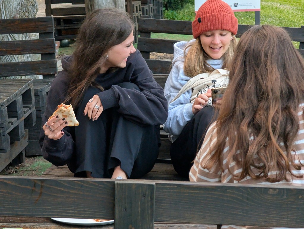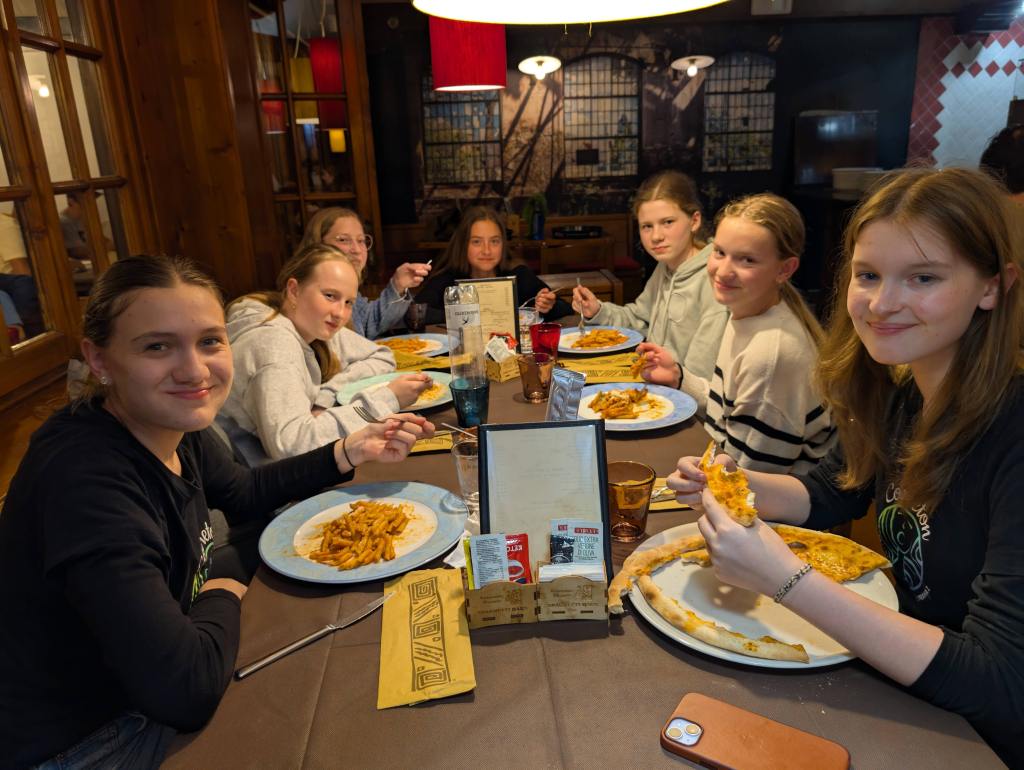 Děti s nadšením vykládaly, co všechno viděly, ale hlavně, co nakoupily (vzorečky s LUSHe a produkty na vlasy vedou, poznámka redakce). V 18:00 jsme opět nasedly do našeho žlutého autobusu a vydali se zpět do Caorle. Hned po příjezdu nás hnal hlad do naší oblíbené restaurace přímo u pláže, kam děti rády chodily celý pobyt. Je to v Caorle náš poslední den, proto si jdeme vychutnat jejich výborné jídlo i teď. Po večeři jsme poděkovali personálu restaurace. A jak jinak můžeme jako sbor děkovat, než písní – a tak I’Paradisi znělo celou restaurací. Dojatý personál naše děti pochválil, také nám moc poděkovali a dětem dali lízátka.