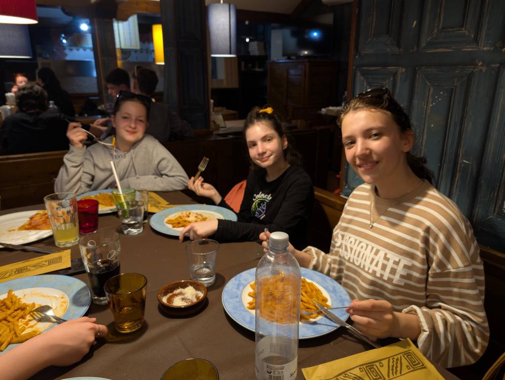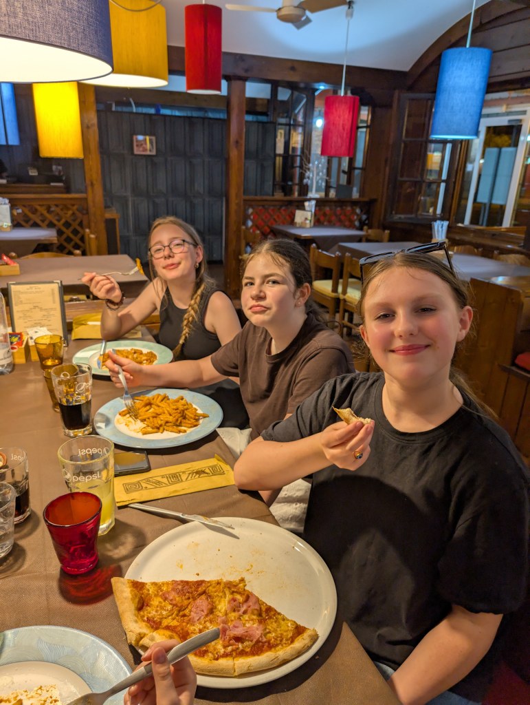 Přijeli jsme do Caorle, kde byla plánovaná večeře. Tu jsme zařídili dopředu, aby s námi restaurace počítala. Paní byla velmi milá, usadila nás dovnitř, aby na naše bambini nelítali mosquitos (čtěte s italským přízvukem, pozn. redakce) Po klasické italské večeři (pizza, těstoviny) dostaly děti nádhernou pochvalu od paní servírky za příkladné chování v restauraci a také poznámku, že skupiny dětí tam má často, ale žádná nebyla tak slušná a milá jako naše děti a bylo jí potěšením se o nás postarat.