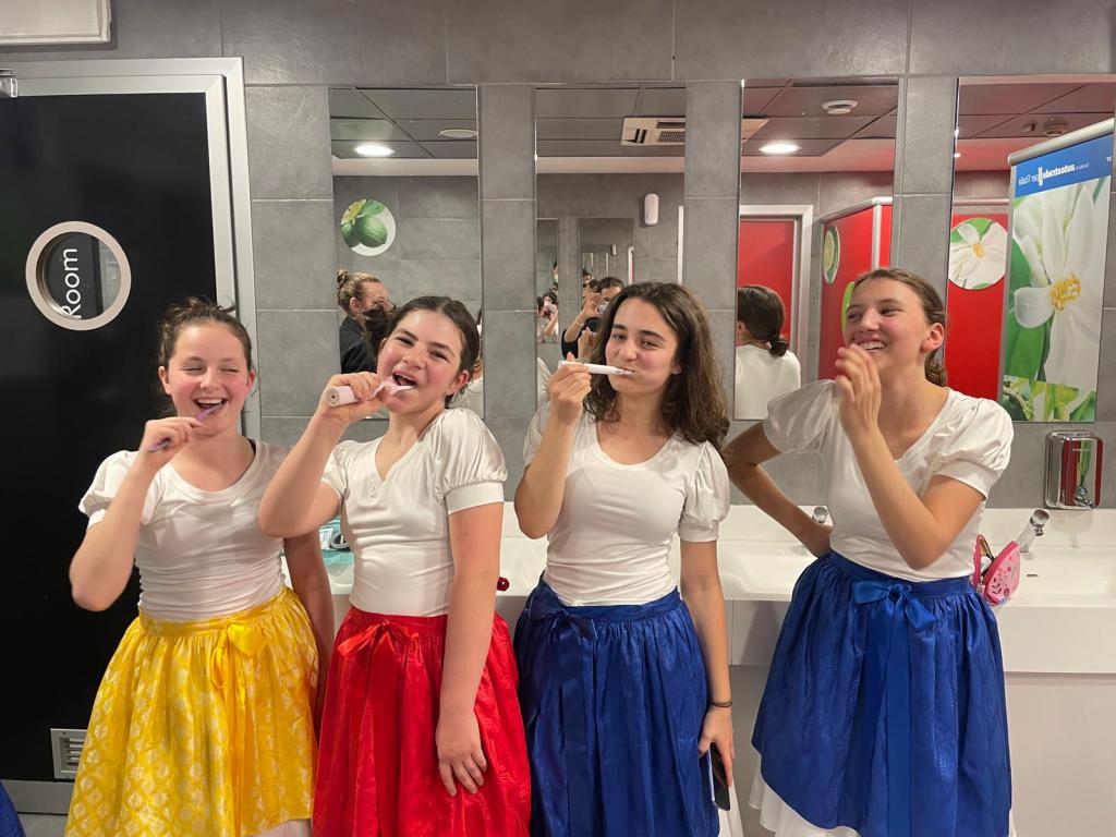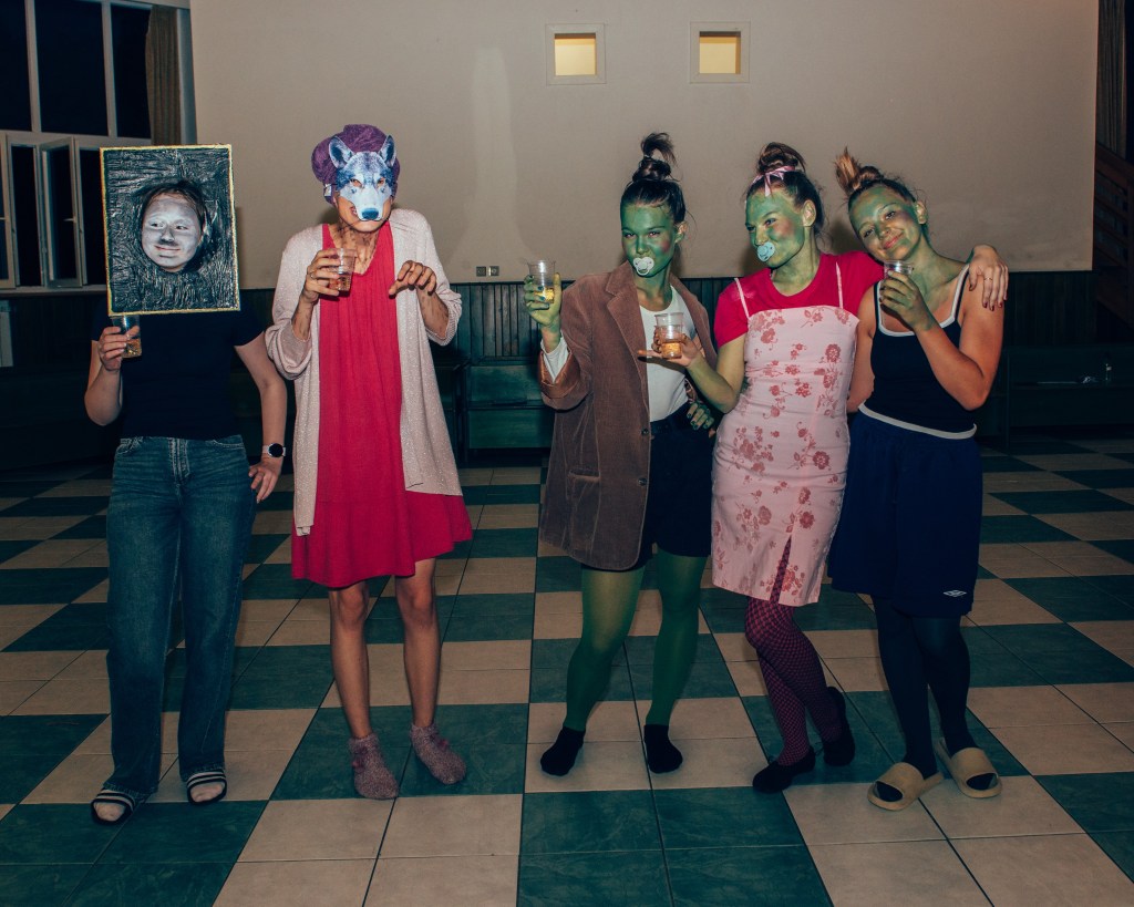 Mediální rada si ještě vymyslela reel na instagram, který byl třeba natočit ve sborových kostýmech. 20 minut pauza na benzínce – musí se stihnout všichni připravit na spaní (zuby, skincare, pyžamko) a někdo ještě převléct do kostýmu, nahrát reels… inu, práce umělce je těžká, leč krásná – pro konent je třeba také něco obětovat.