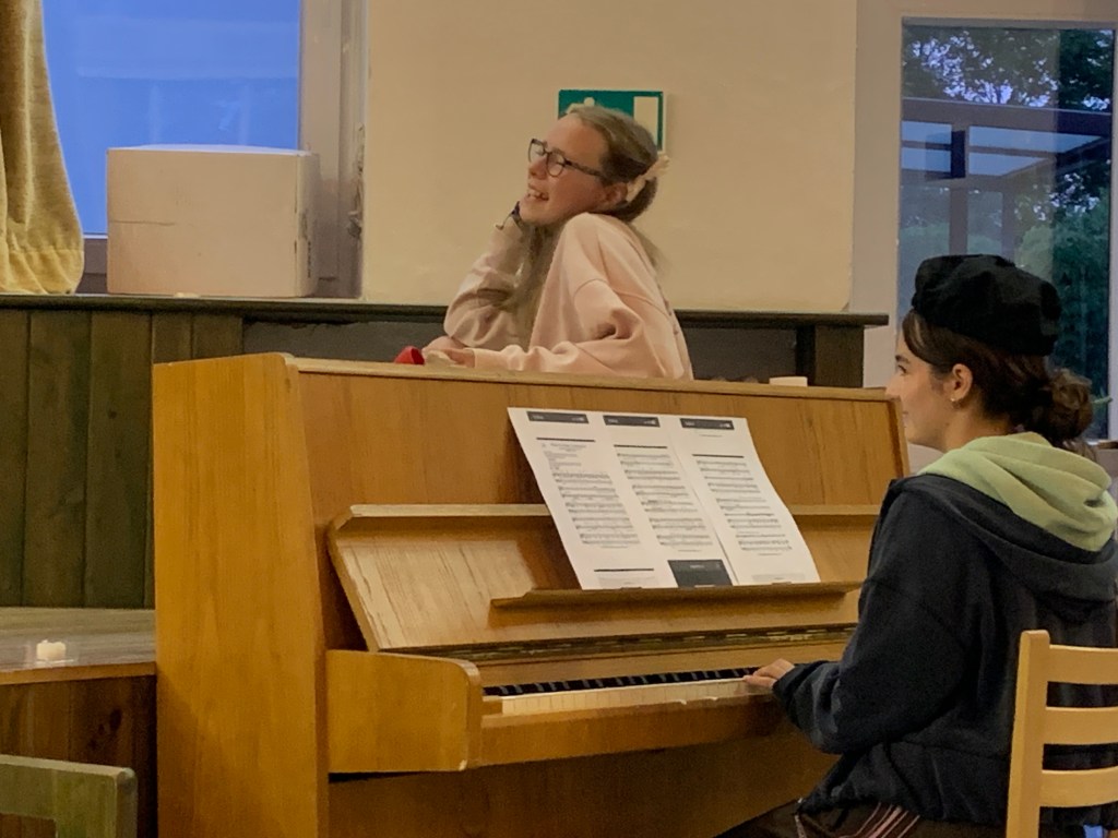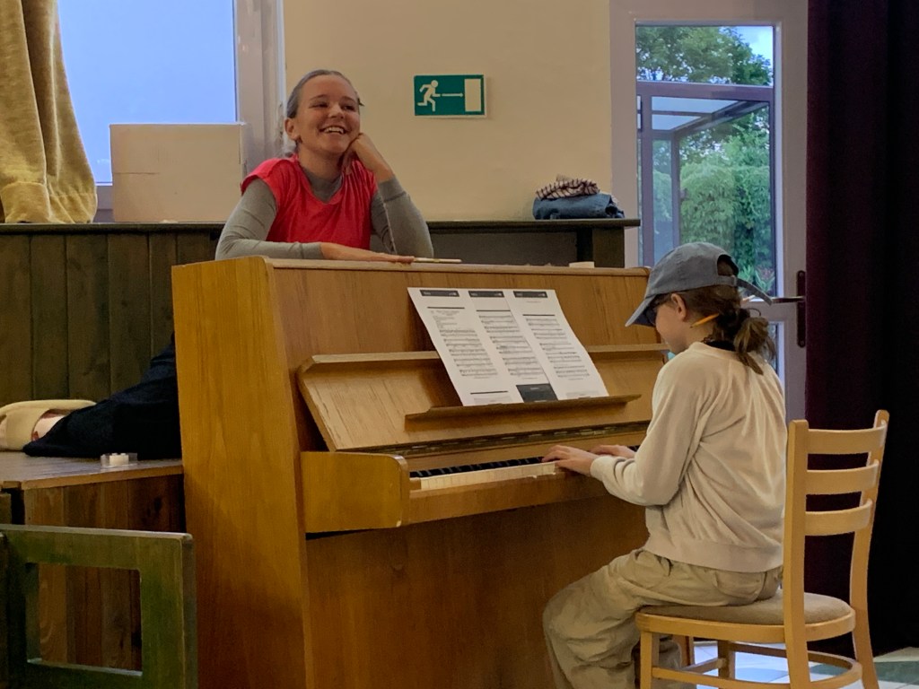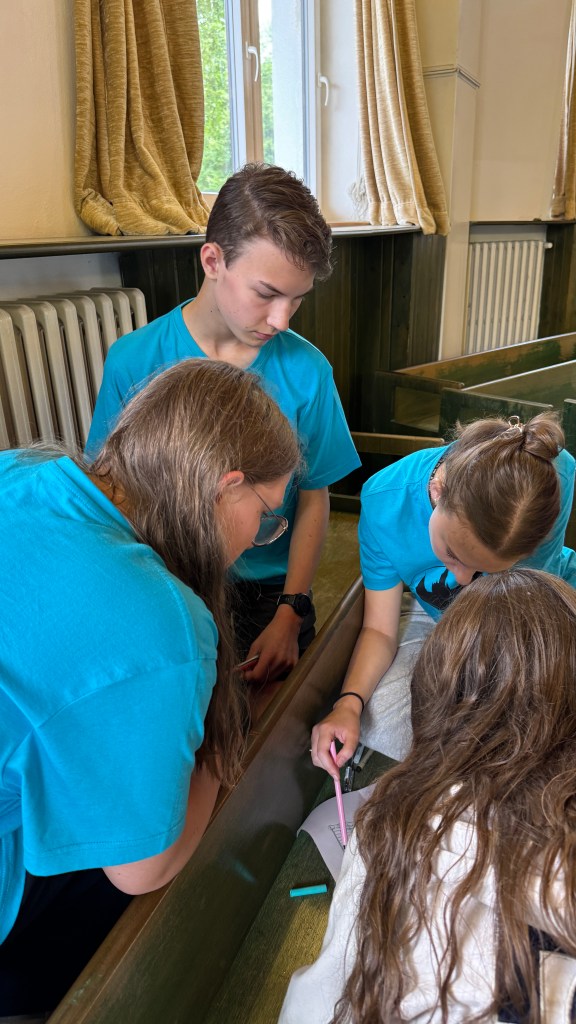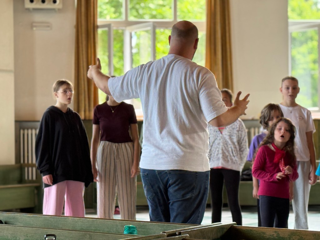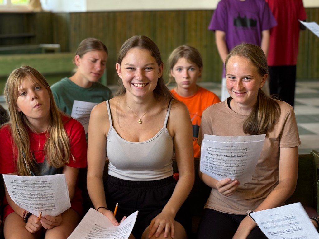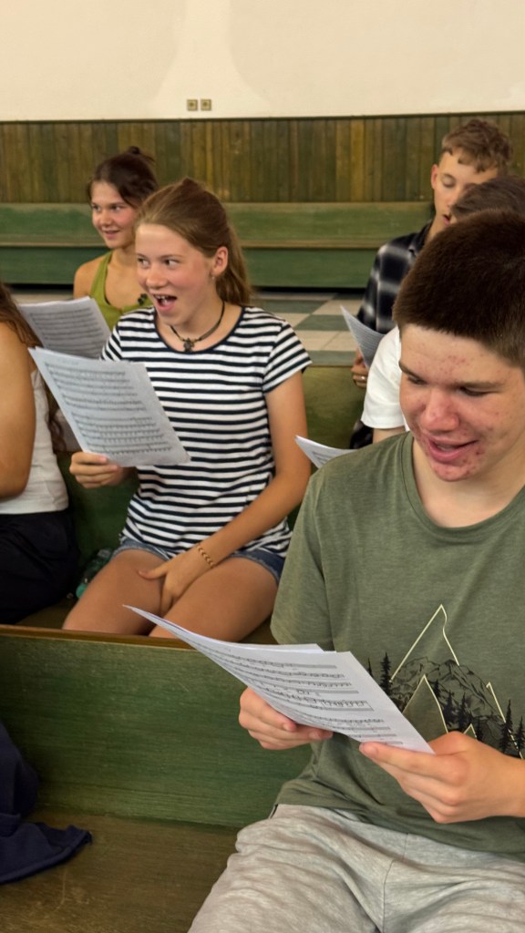 Po večeři naši sbormistři založili smíšený komorák! Chlapci s nejstaršími děvčaty se pod vedením Tomáše nazkoušeli skladbu ve smíšené sazbě! Máme radost.