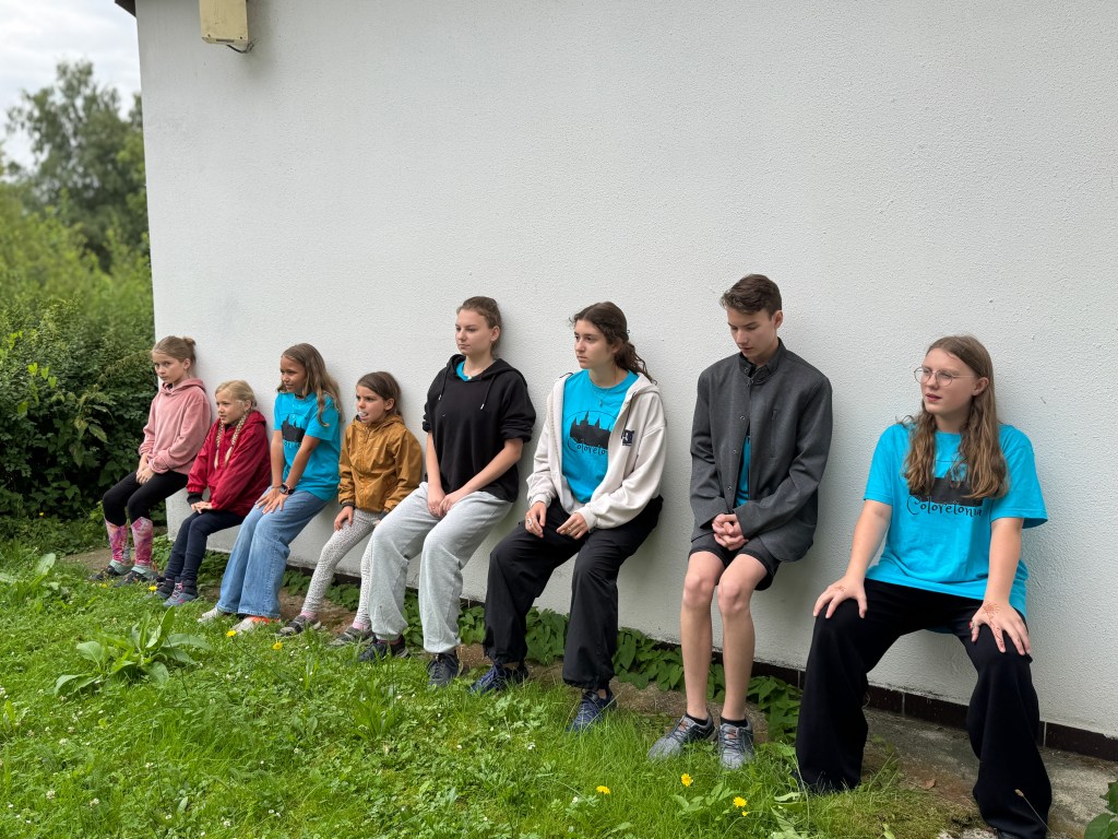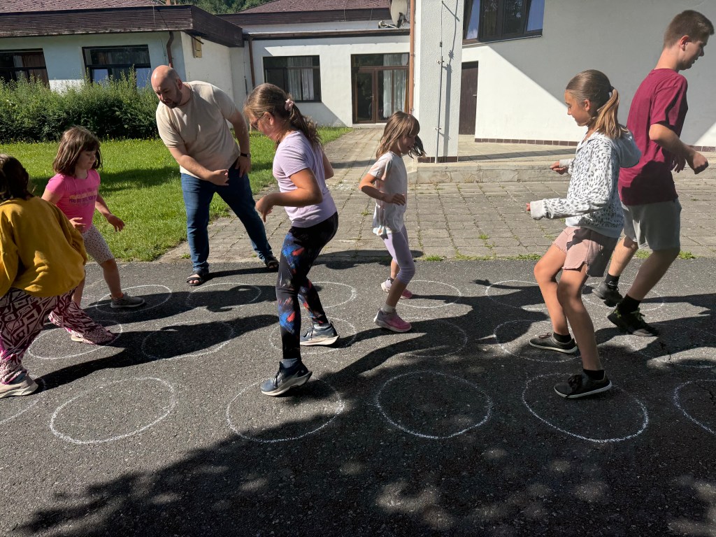 V mezičase si koncertní sbor užíval osobního volna na odpočinek a procházku po areálu, děti přípravného sboru vyrazily na hřiště, hrály městečko Palermo, kreslily křídami na chodník.