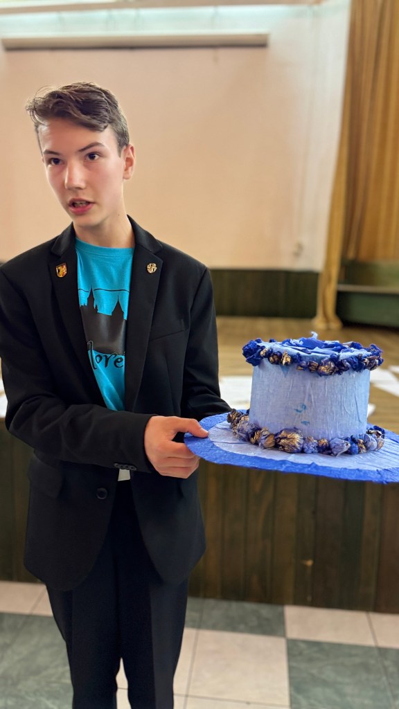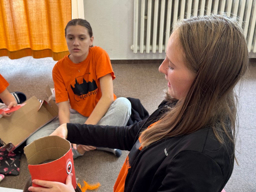 Večer jsme se všichni sešli a postupně si oddíly navzájem své výrobky odprezentovaly na malé módní přehlídce. Prohlédněte si ve fotogalerii, protože skutečně klobouky byly vrcholem kreativity, dokonce ke každému z nich byl vymyšlen i příběh, z jakých materiálů a jak klobouk vznikal, prezentující odpovídali i na doplňující otázky z hlediště.
