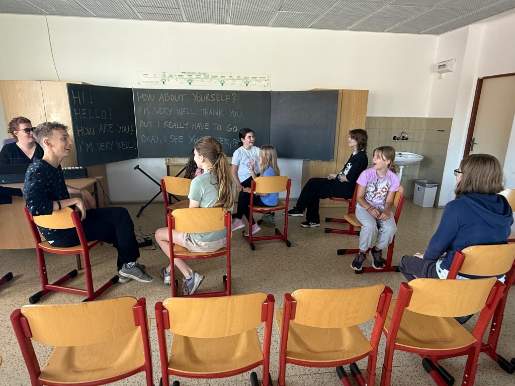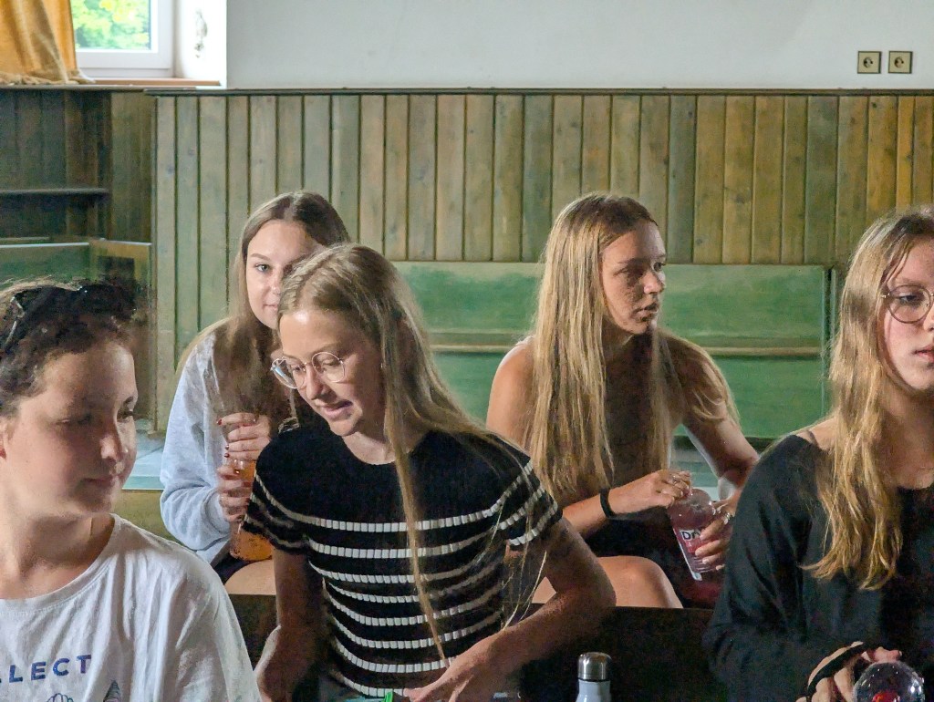 Zatímco Přípravný sbor vyrazil na rozlučkovou diskotéku, Koncertní sbor si odhlasoval “schůzi”, usadili se do kroužku a sdíleli si navzájem svoje zážitky, co je nevíce bavilo a co by do příště změnili, řeč padla i na budoucí koncerty, soutěže a cesty do zahraničí.