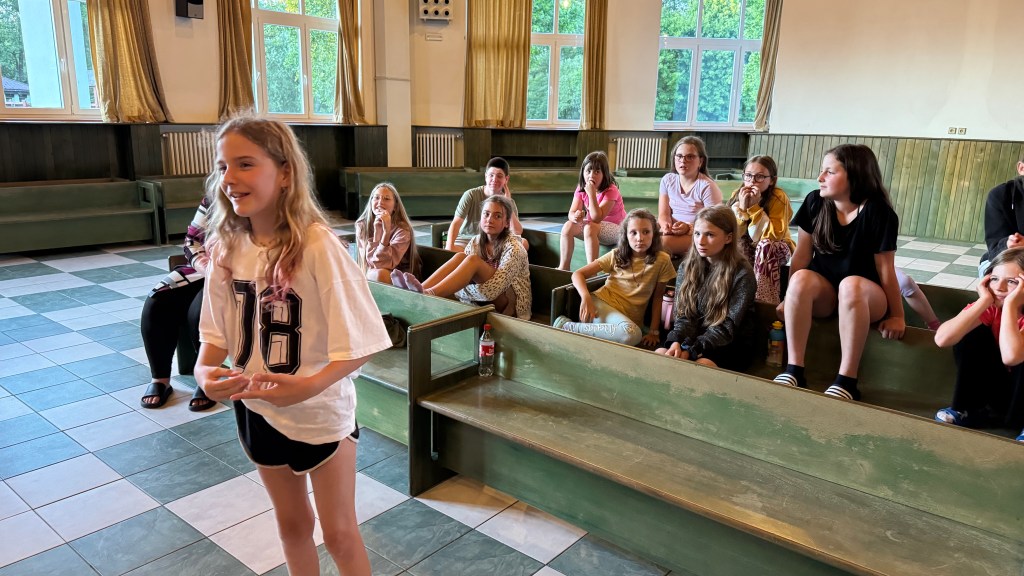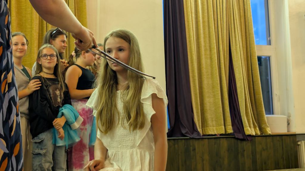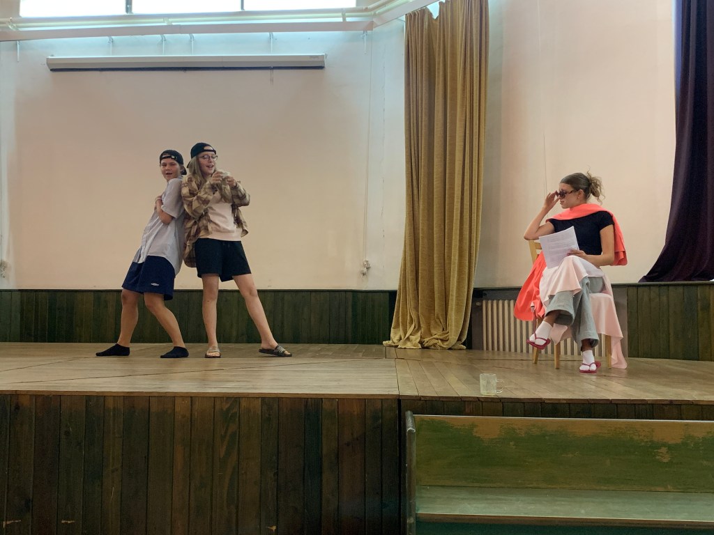 V odpoledním klidu nás navštívili v rámci naší celotáborové hry režiséři z Ameriky, Hollywood je totiž v troskách. Režiséři byli slavní pro tvorbu filmů pro dospívající – muzikály, příběhy plné hudby, tance, dramatu! Ale požárem ve skladu filmů i oni ztratili materiál a taky své vzpomínky. Povedlo se zachránit pouze krátkou tříminutovou scénu z jejich nejznámějšího filmu – High school musical! Pokud by děti co nejvěrohodněji scénu ve svém provedení večer zahráli, příběh by opět ožil, vzpomínky by byly obnoveny a kariéra režisérů zachráněna!